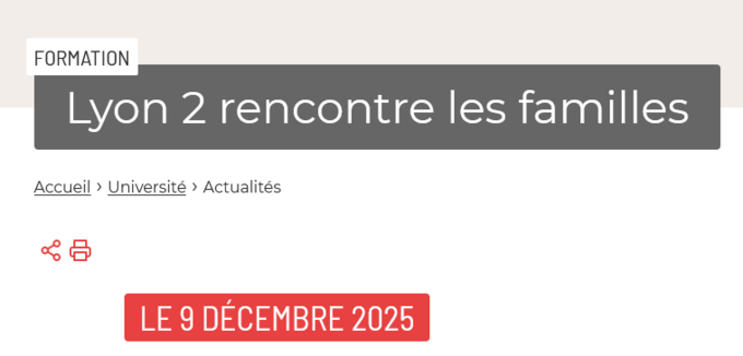Par Anne Coudie, publié le mercredi 15 octobre 2025 09:45 - Mis à jour le mercredi 15 octobre 2025 09:49L’Université Lumière Lyon 2 invite les familles d’élèves de première et de terminale à une soirée d’information sur son offre de formation post-bac. -