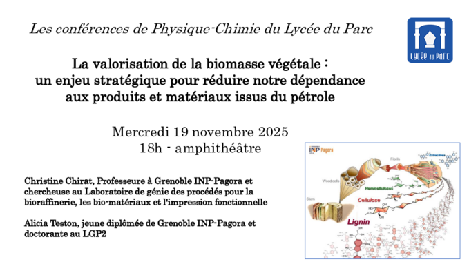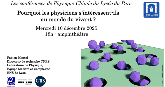 Par Admin JUNIER, publié le dimanche 2 novembre 2025 17:46 - Mis à jour le dimanche 2 novembre 2025 18:46Conférence de Physique-Chimie, dans l’amphithéâtre, le mercredi 19 novembre à 18 h. Ouverte aux élèves et enseignants du lycée du Parc. -